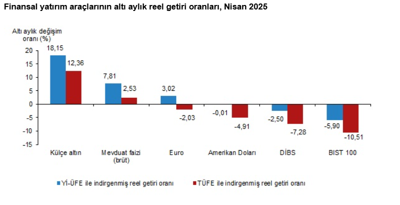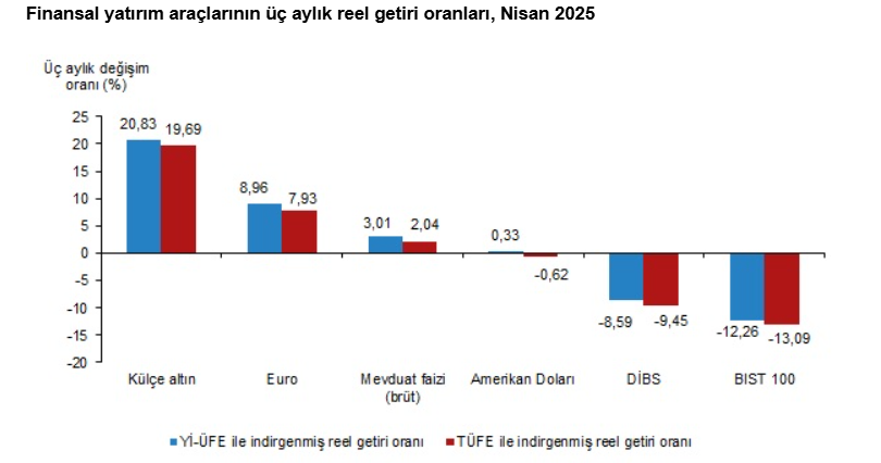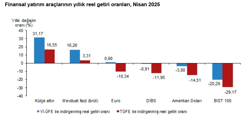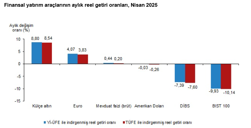 Türkiye İstatistik Kurumu (TÜİK), nisan ayına ait finansal yatırım araçlarının gerçek getiri oranlarını açıkladı.