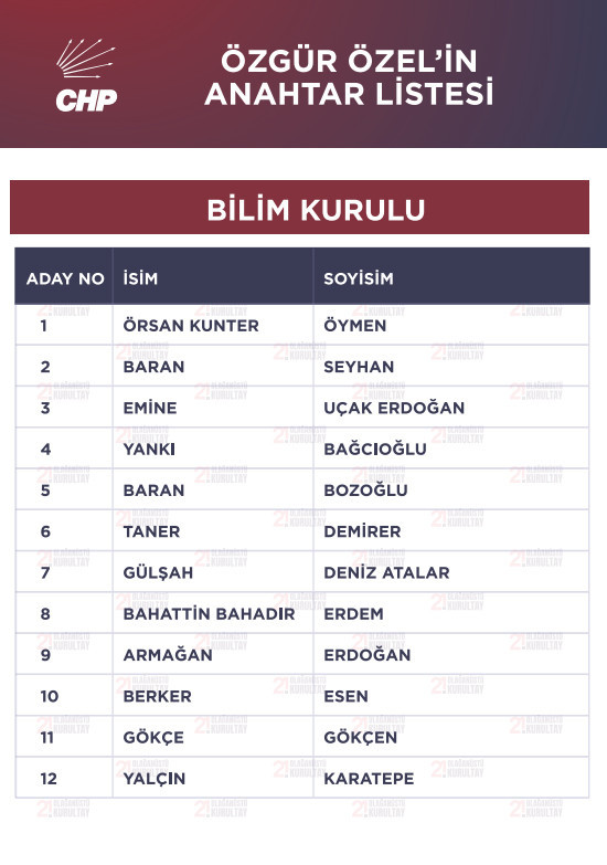Özgür Özel, Bilim Kurulu için de anahtar listesine şu isimleri koydu: