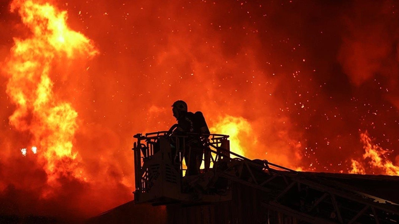 Bölgeye gelen itfaiye grupları, elektrik tellerinin merdivenli araca pürüz olması nedeniyle konutta mahsur kalan Handan Savaşkan’ı (53) kurtarmak için atlama yatağı açtı.